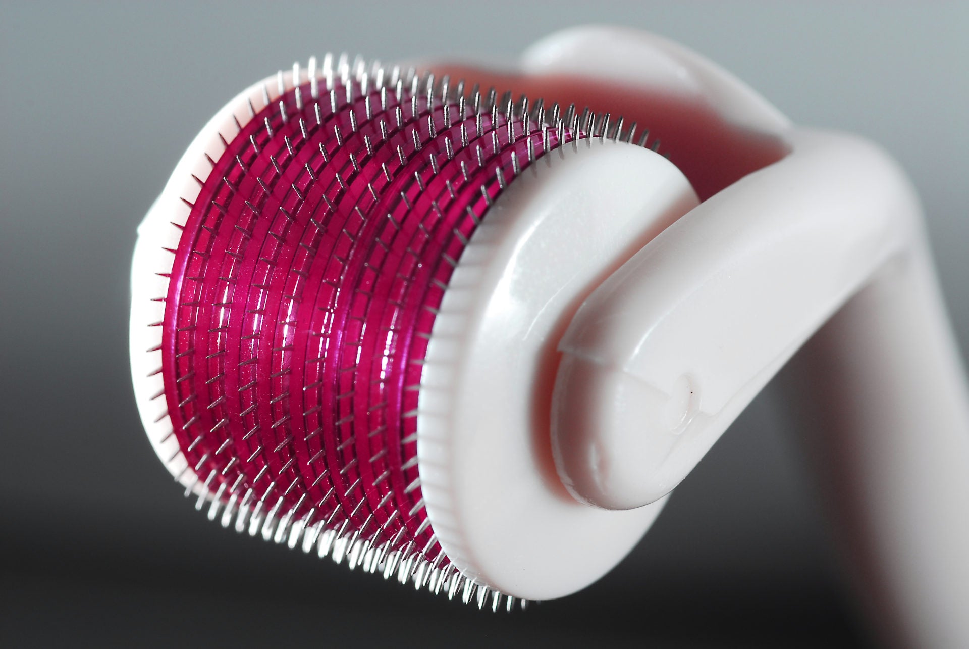 The derma roller for the face has a smaller roller head to fit in smaller areas such as above the top lip and around the eyes.